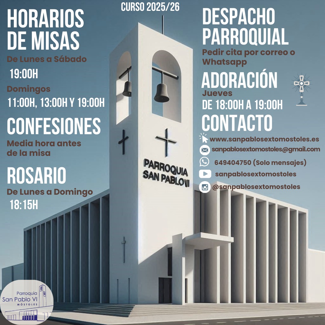 Horarios de Misas y apertura del templo para el curso 2025/26.